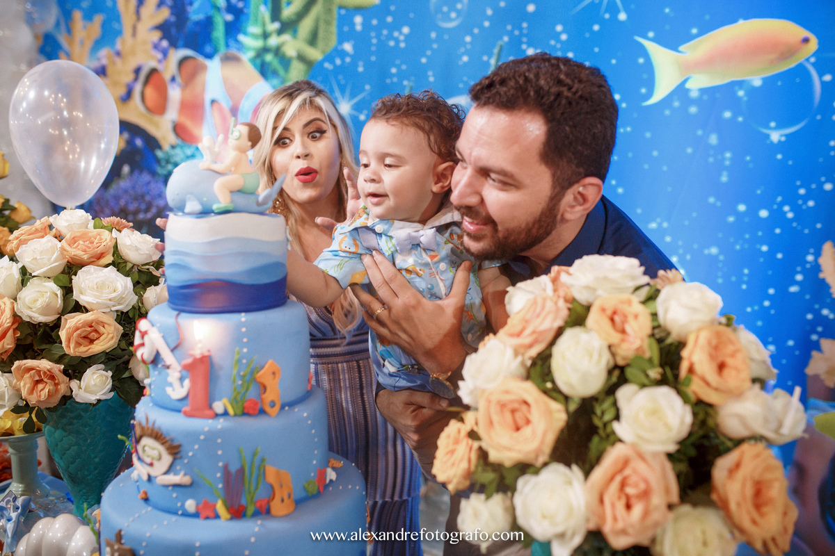 O 1º aninho de Pedro foi sonhado pela mamãe antes mesmo dele nascer. A festa foi no fundo do mar com muito amor e carinho!