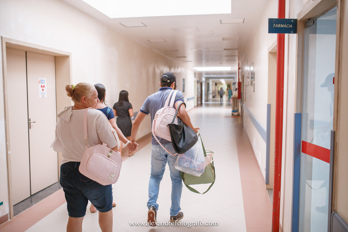 Rafael entrou em contato por volta das 10h da manhã de sábado. Perguntava a respeito da fotografia de nascimento. Perguntei sobre a data do parto e ele respondeu com tranquilidade: -daqui uma hora e meia, mais ou menos. Eu verifiquei a agenda, confirmei tudo certinho e parti na direção do hospital. Lá chegando conheci os papais de Cecília.